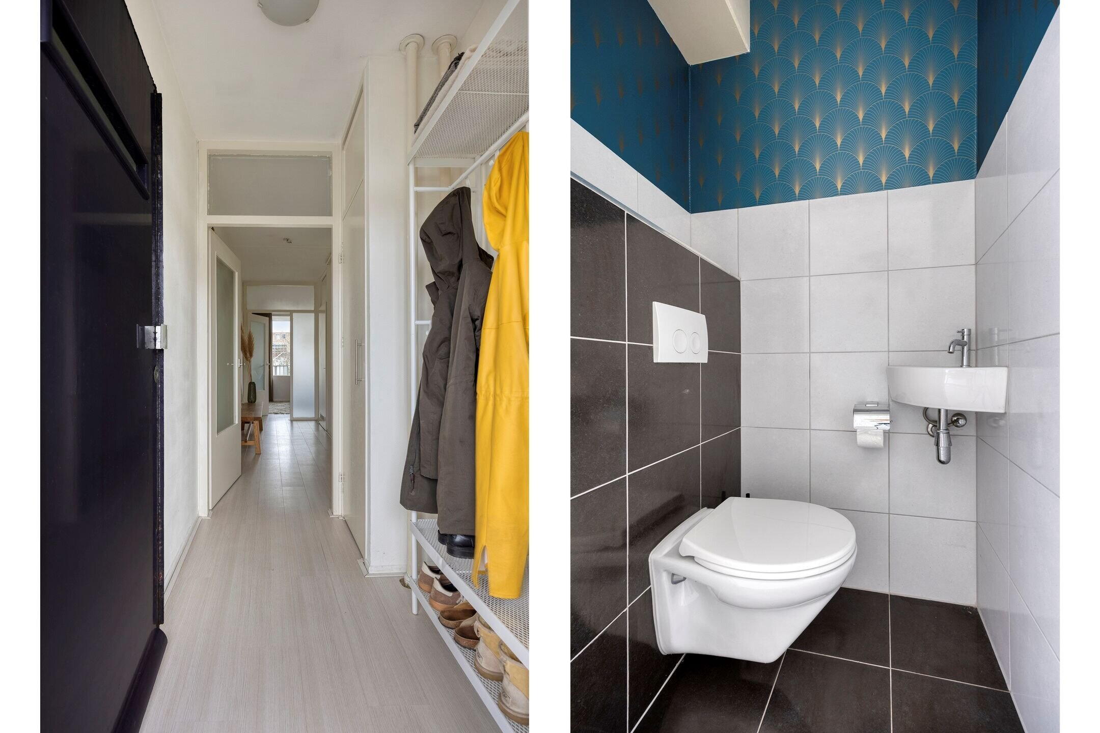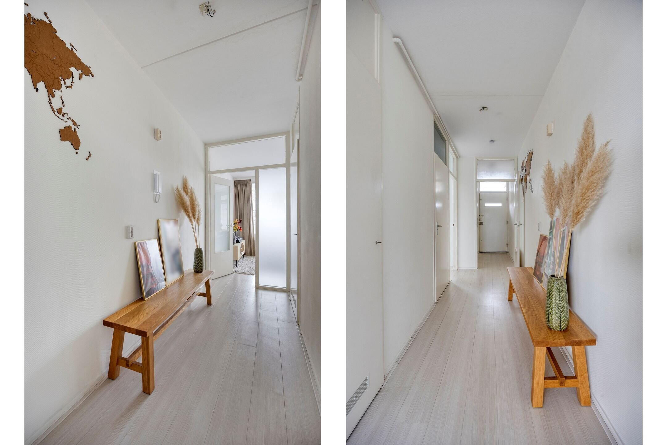 Je betreedt het appartement via een ruime hal met toegang tot alle vertrekken en de meterkast.
